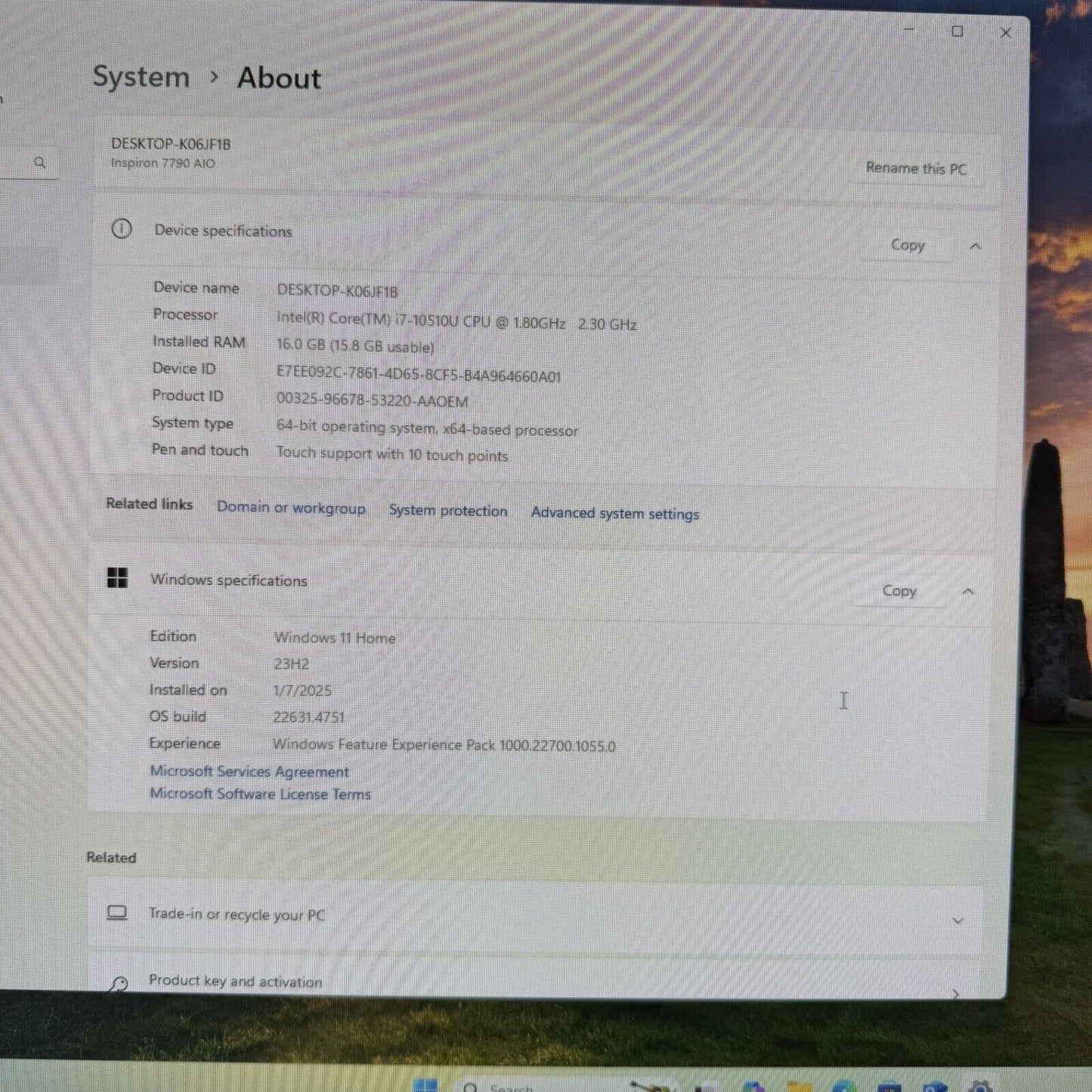 DELL Inspiron 7790 27 AIO Core i7, 1080P - 16GB RAM - 512Gb SSD Touch Screen